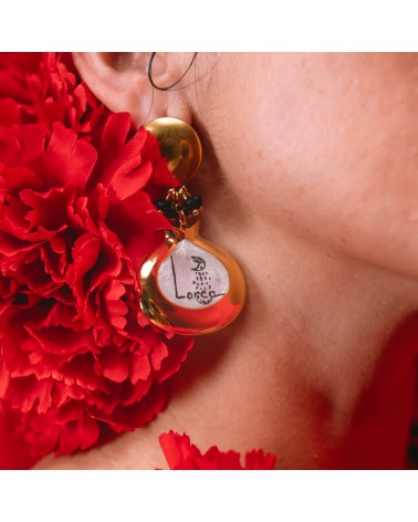 Piezas creadas artesanalmente con resina y dibujos pintados a mano inspirados en la firma del Romancero de Federico García Lorca que no solo forma parte de la historia de Granada, sino que también forma parte de nuestra esencia, de la poesía que respira esta tierra y del arte.
