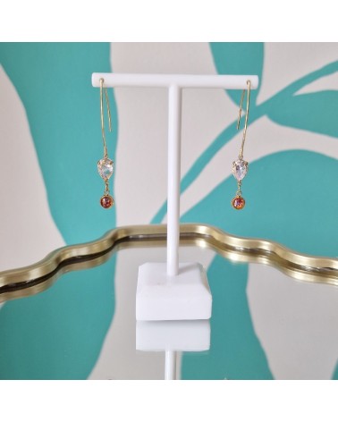 Pendientes con circonitas y circulitos de resina elaborados artesanalmente con flores preservadas naturales.