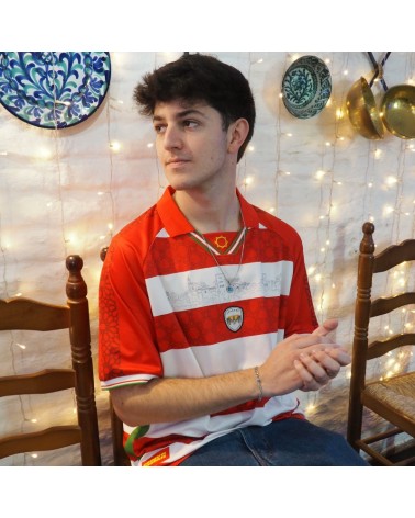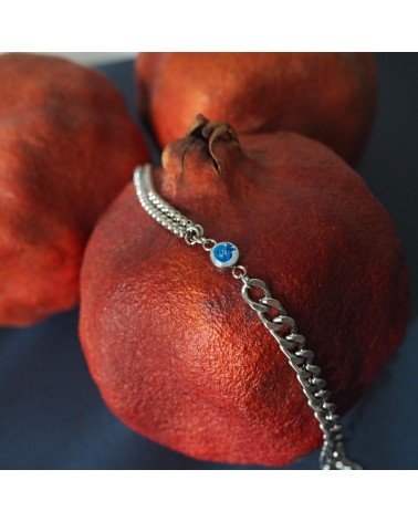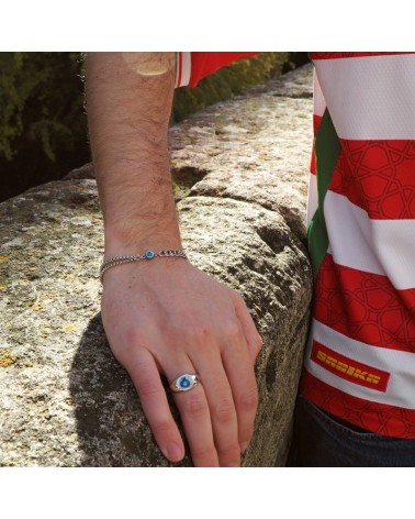 Pulsera de doble cadena de serpiente con base redonda de resina blanca y dibujo creado artesanalmente en referencia a nuestra cerámica granadina y cadena de eslabón grueso plano.