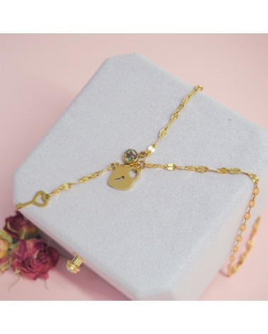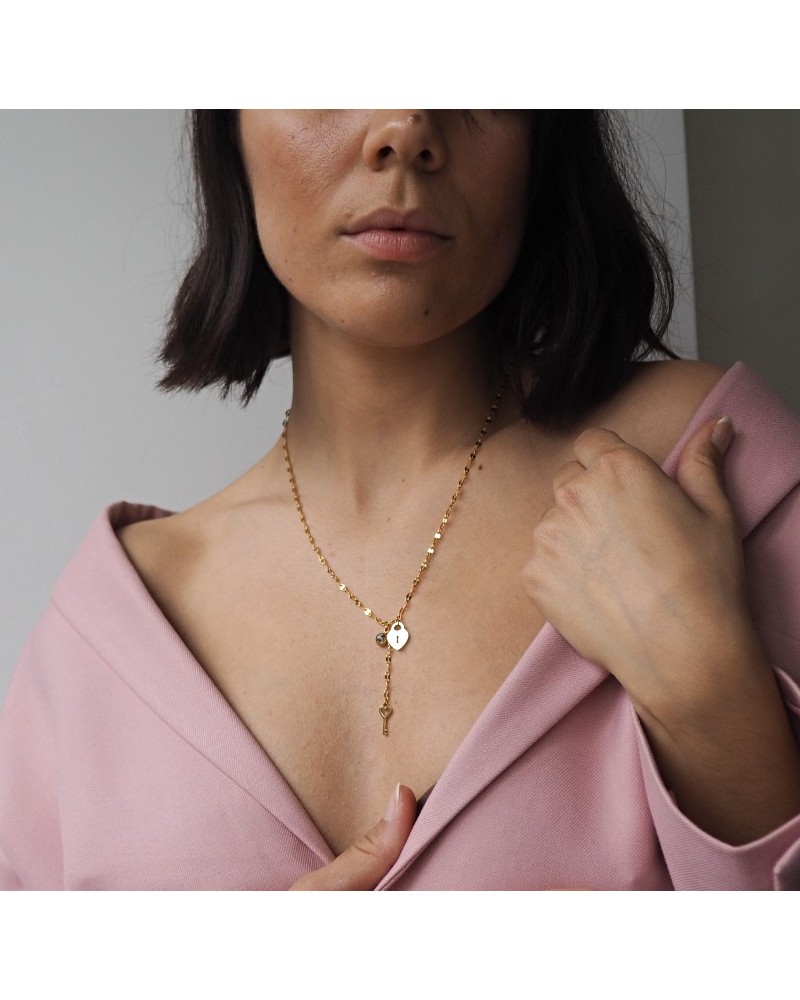 Colgante creado artesanalmente con abalorio de candado corazón, llave y circulito de resina con flores preservadas.