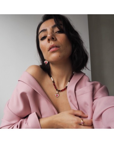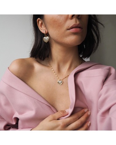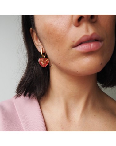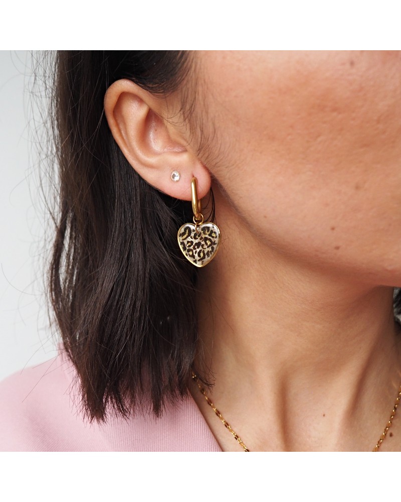 Pendientes creados artesanalmente con base rectangulares y abalorios que pueden quitarse o ponerse de corazones rellenos de resina y pintados a mano tanto de animal print, colores con pan de oro o granadas.