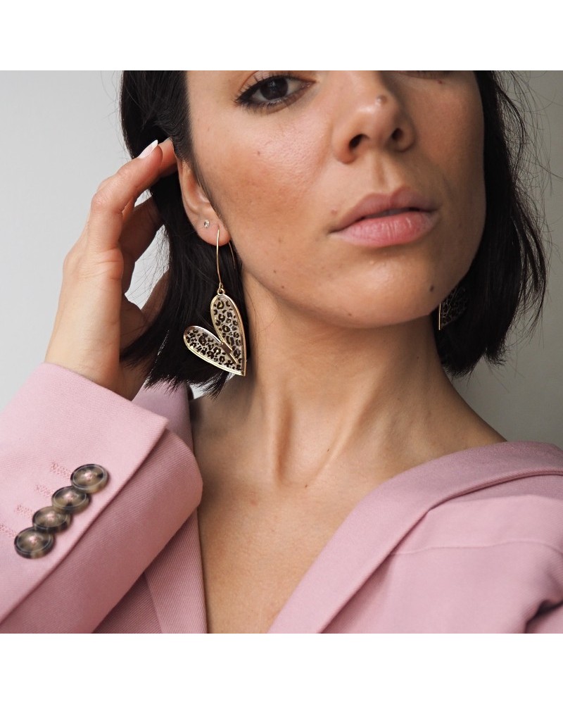 Pendientes creados artesanalmente con resina y dibujo de animal print pintado a mano.
